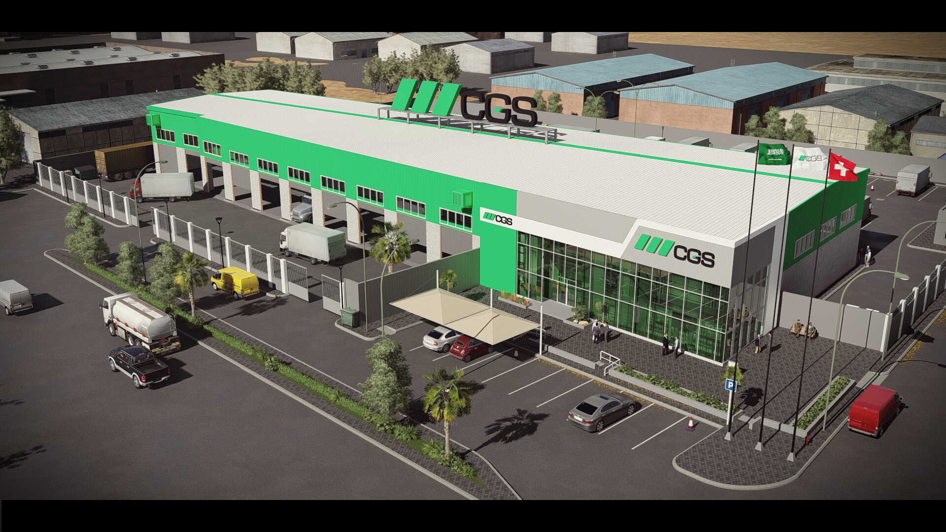 مبنى إداري ، صالة عرض ، مخزن قطع غيار وورشة